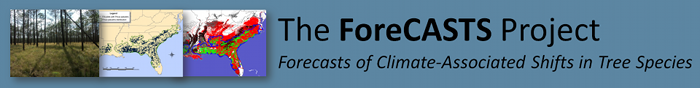 Changing climatic conditions could pose a severe threat to forest tree species, which may be forced to adapt to new conditions or shift their ranges to more favorable environments. On-site adaptation, range-shift, and population extirpation all could have negative genetic consequences.The maps in this atlas forecast future suitable habitat for North American forest tree species under two climate change models, and predict the parts of tree ranges that will be under the greatest climate change pressure. They have been generated using the multivariate spatio-temporal clustering (MSTC) technique.
