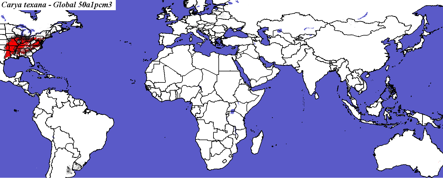 Compare with Carya texana modeled for PCM A1FI in 2100 by Iverson and Prasad |