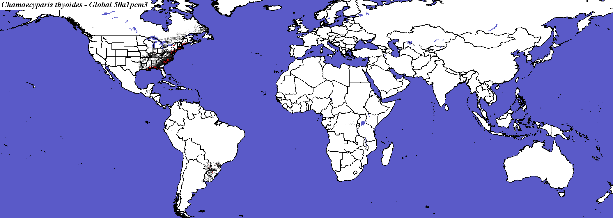 Compare with Chamaecyparis thyoides modeled for PCM B1 in 2100 by Iverson and Prasad |