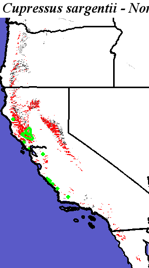 | Cupressus sargentii - Occurrence Locations |