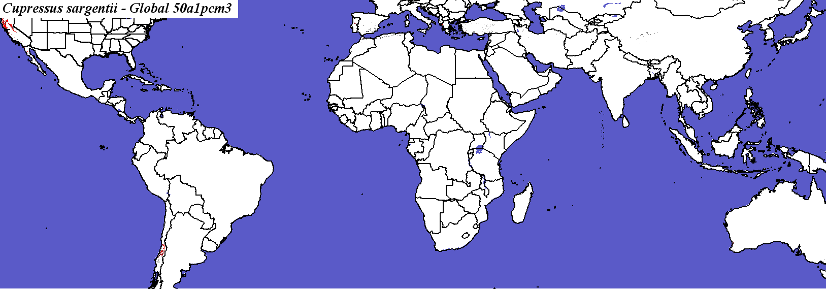 Cupressus sargentii - Hargrove's Present Suitable Range Outline