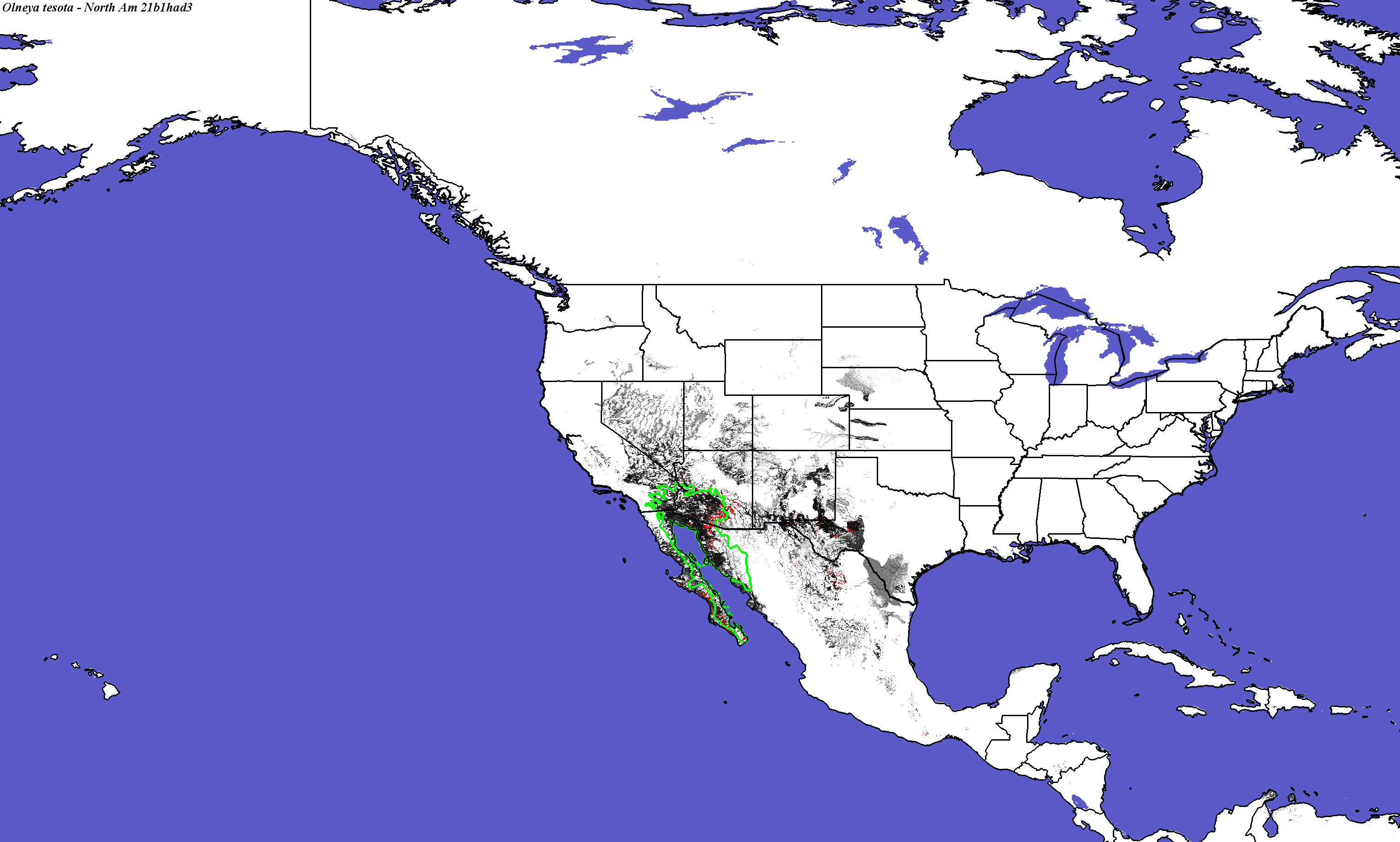 Olneya tesota - Hargrove's Present Suitable Range Outline