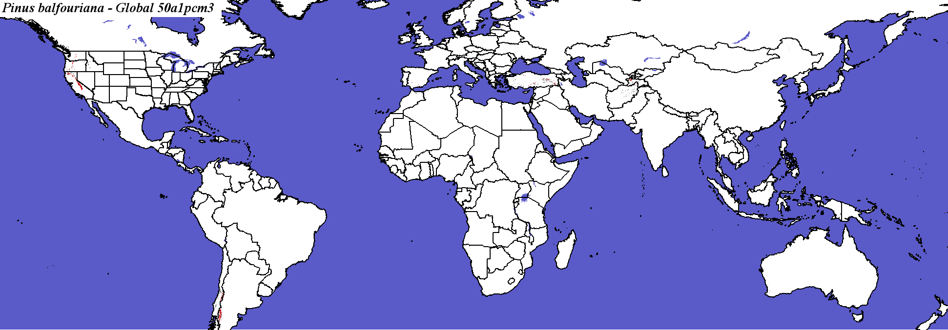 Compare with Current Range from the Silvics Manual for Pinus balfouriana Pinus balfouriana not modeled by Iverson and Prasad Pinus balfouriana not modeled by Crookston and Rehfeldt Pinus balfouriana not modeled by Coops and Waring |