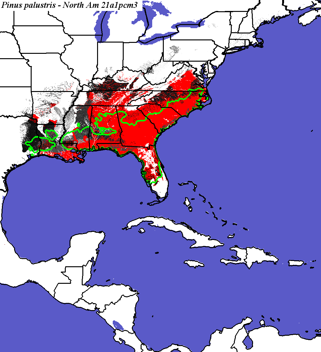 Compare with Pinus palustris modeled for PCM B1 in 2100 by Iverson and Prasad |