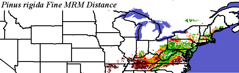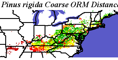Compare with Pinus rigida modeled for Hadley B1 in 2100 by Iverson and Prasad Pinus rigida not modeled by Crookston and Rehfeldt |