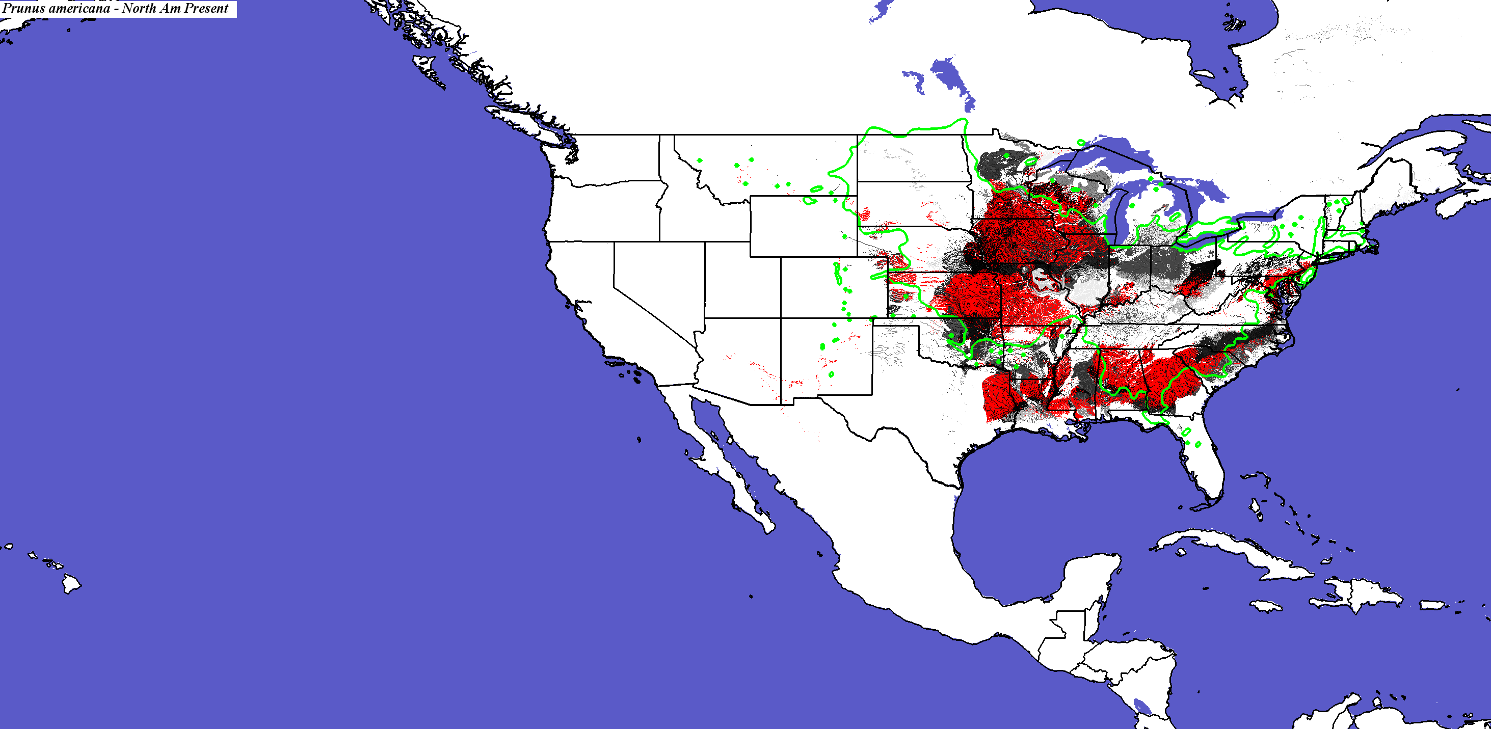 Prunus americana - Hargrove's Present Suitable Range Outline