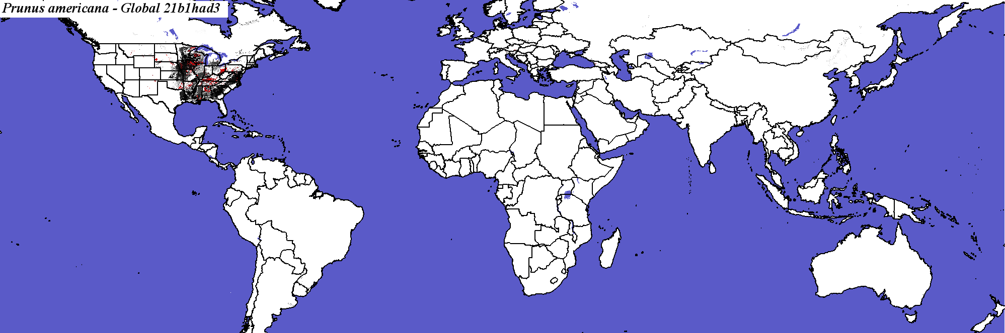 Compare with Prunus americana modeled for Hadley B1 in 2100 by Iverson and Prasad Prunus americana not modeled by Crookston and Rehfeldt |