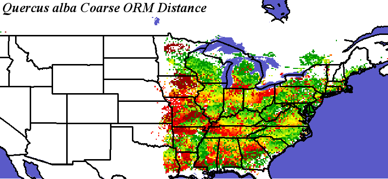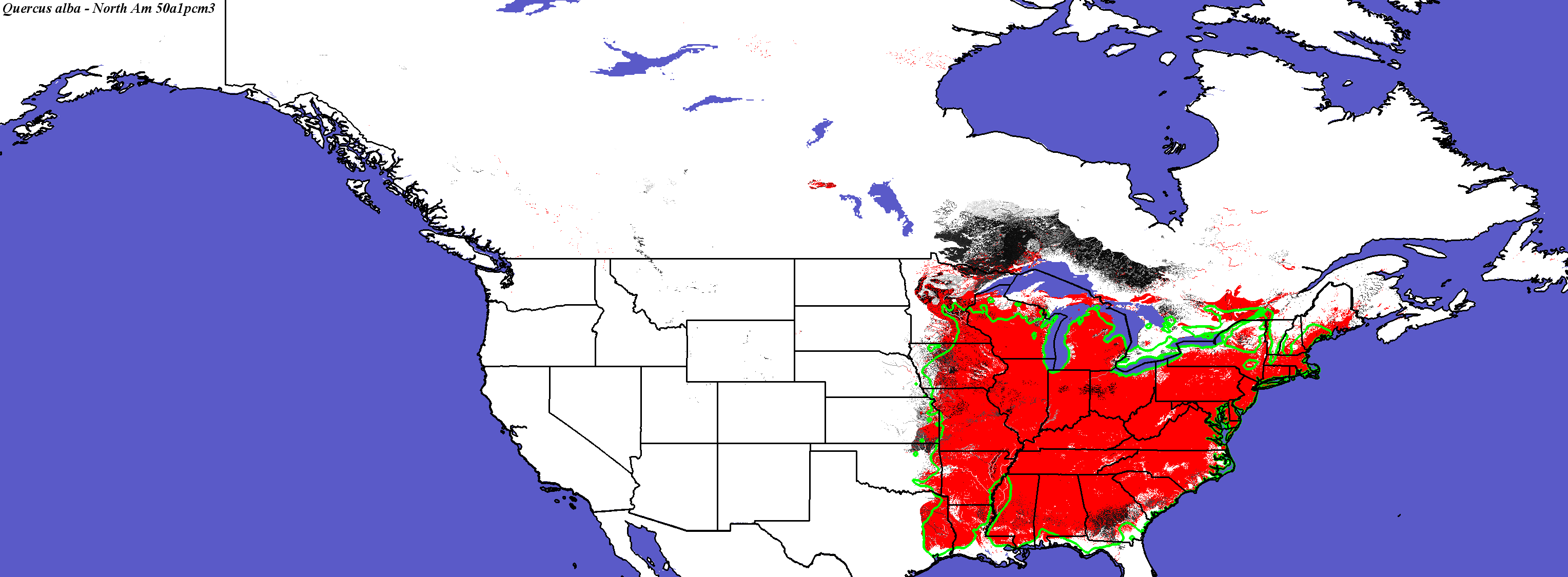 Compare with Quercus alba modeled for PCM A1FI in 2100 by Iverson and Prasad |