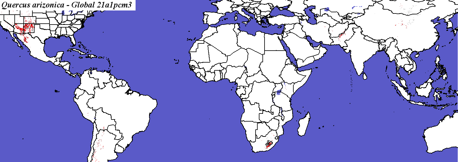 Compare with Current Range from the Silvics Manual for Quercus arizonica Quercus arizonica not modeled by Iverson and Prasad Quercus arizonica not modeled by Crookston and Rehfeldt Quercus arizonica not modeled by Coops and Waring |