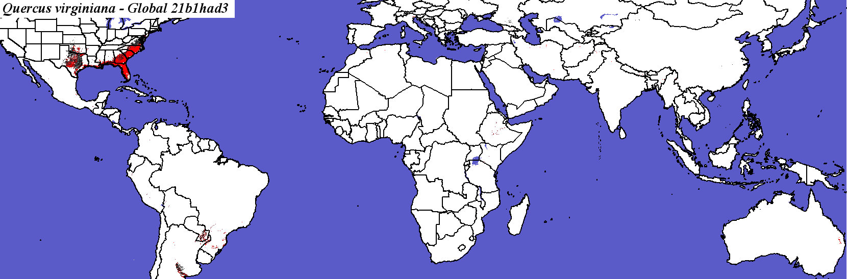 Compare with Quercus virginiana modeled for PCM B1 in 2100 by Iverson and Prasad |