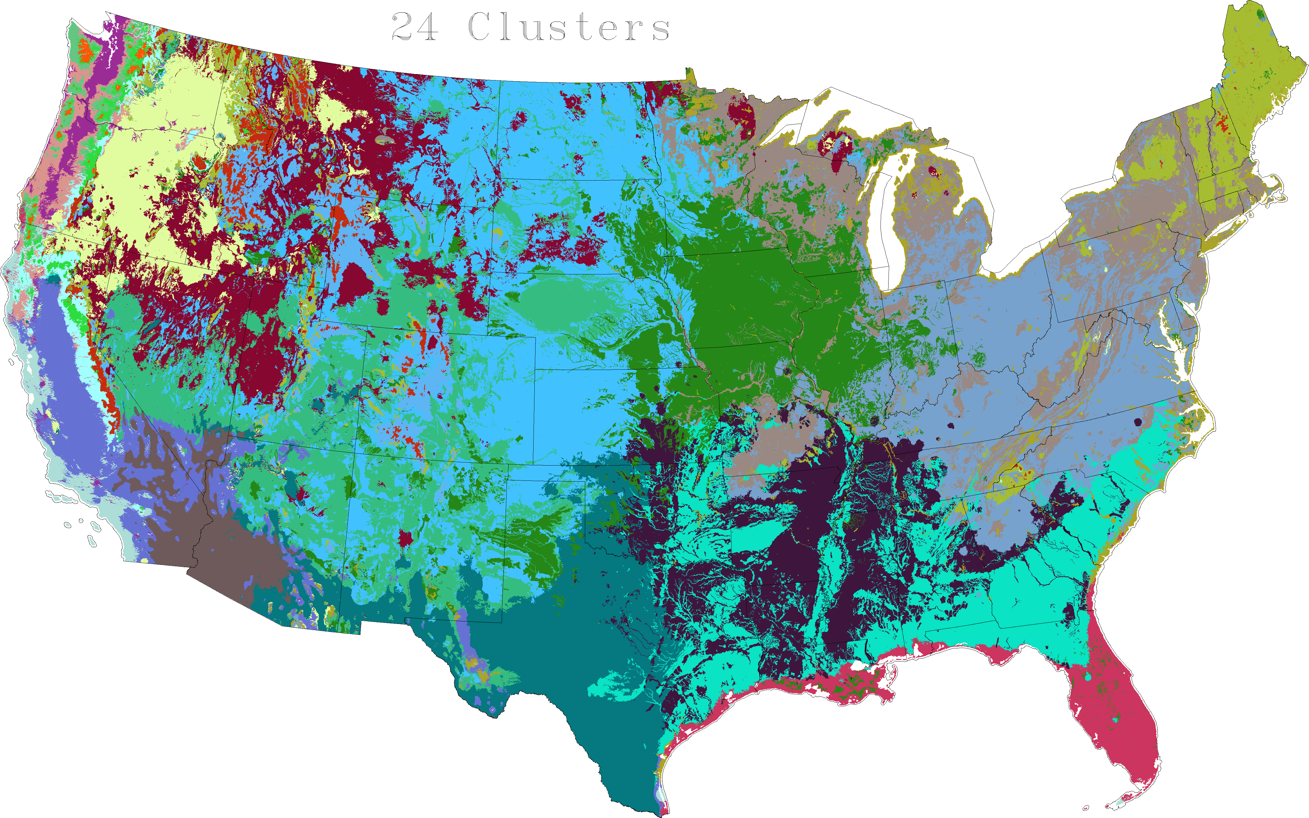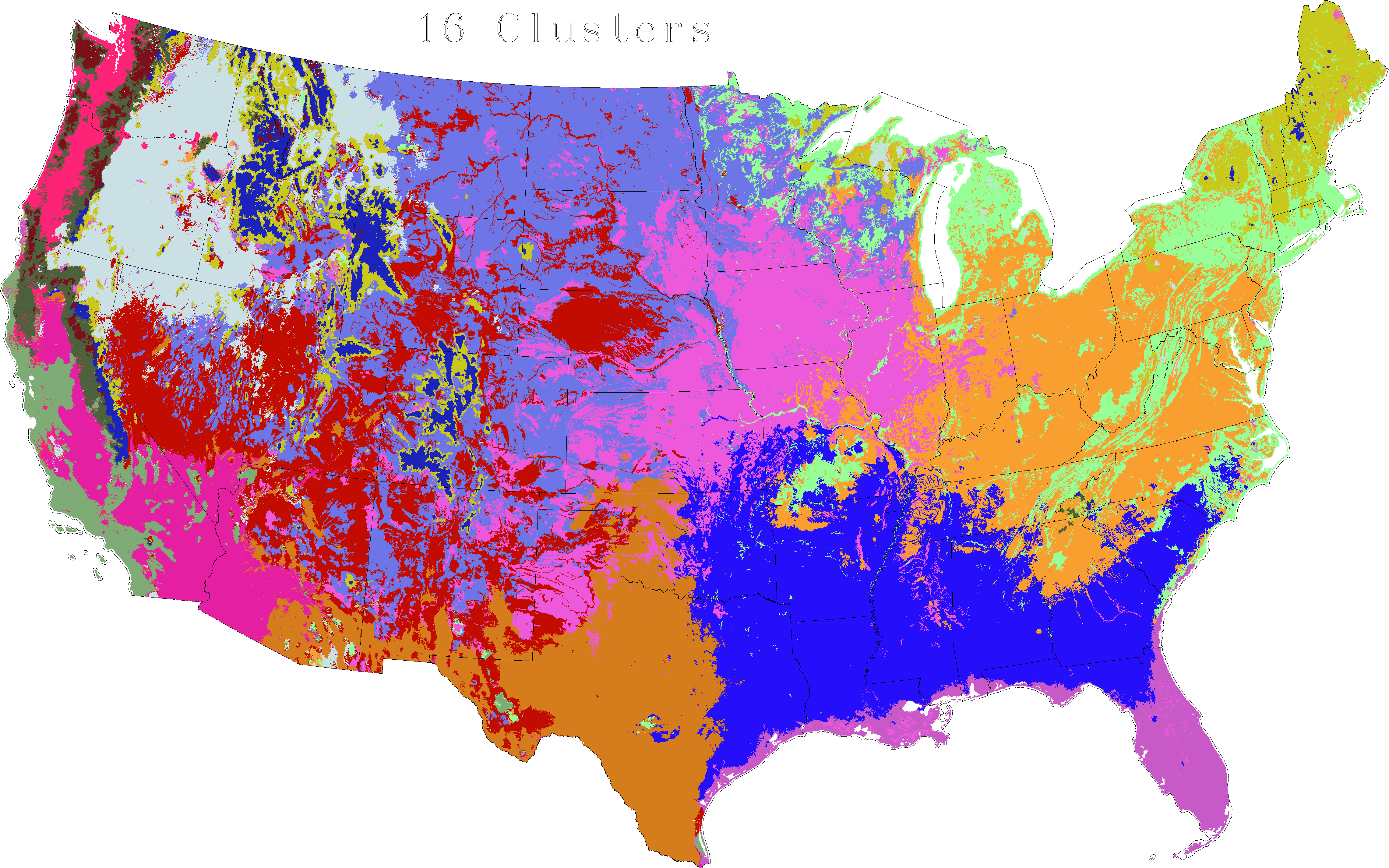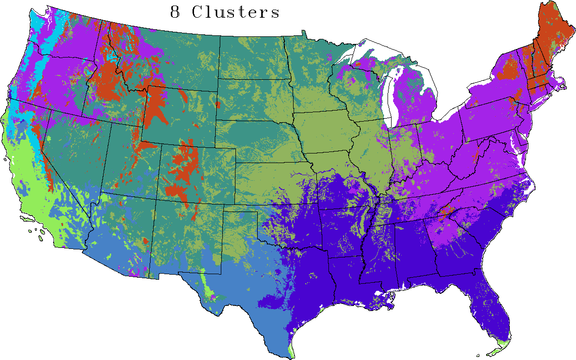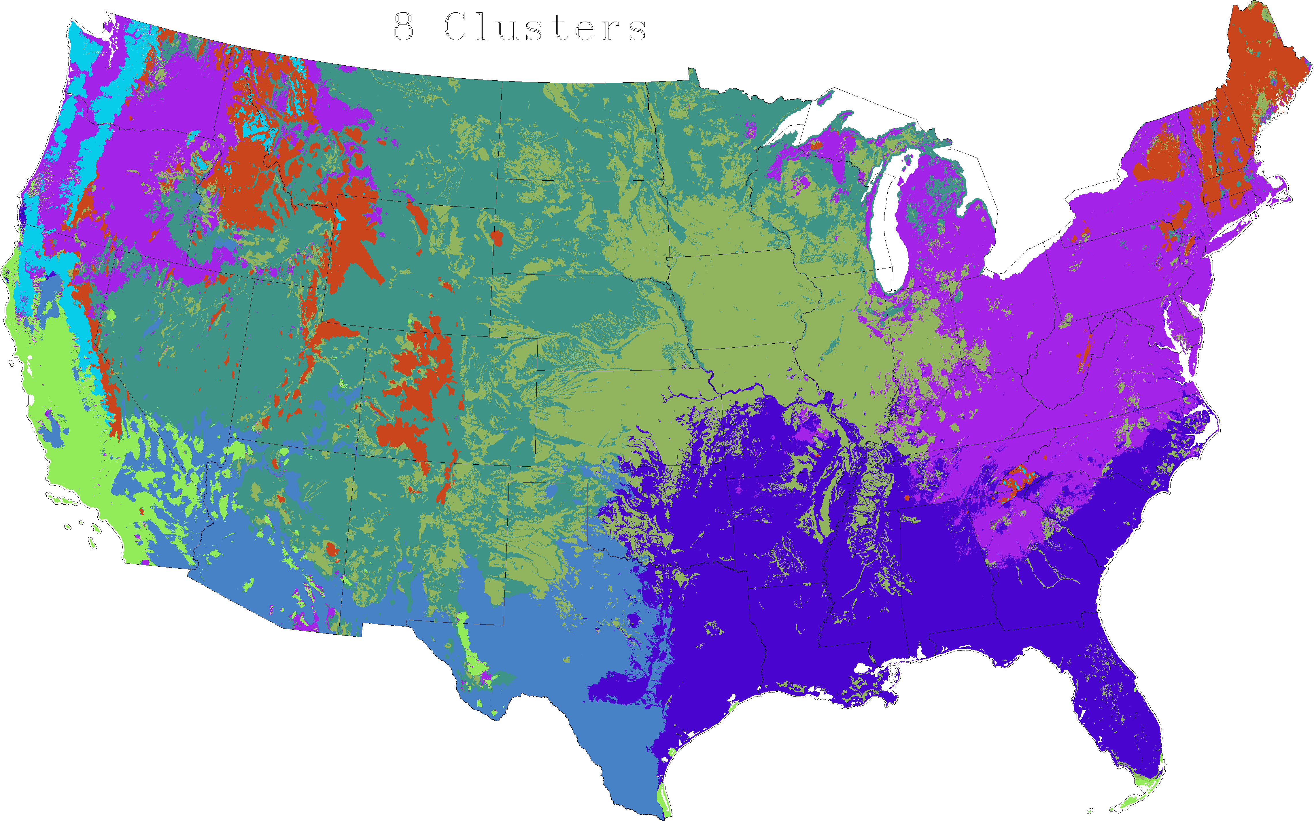 We have not included information about day/night diurnal temperature differences. This is a surrogate for many things, including vegetation type/structure, soils and geology, and urbanization.