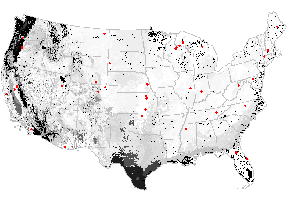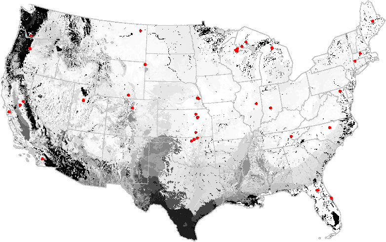 Analysis of the AmeriFlux network prior to these changes indicated that, while the central northeastern, southern, midwestern, and northwestern portions of the United States were relatively well-represented, environments within the Pacific Northwest, Sonoran, and south Texas were poorly represented by existing AmeriFlux tower sites (see http://research.esd.ornl.gov/~hnw/networks for details of this analysis).